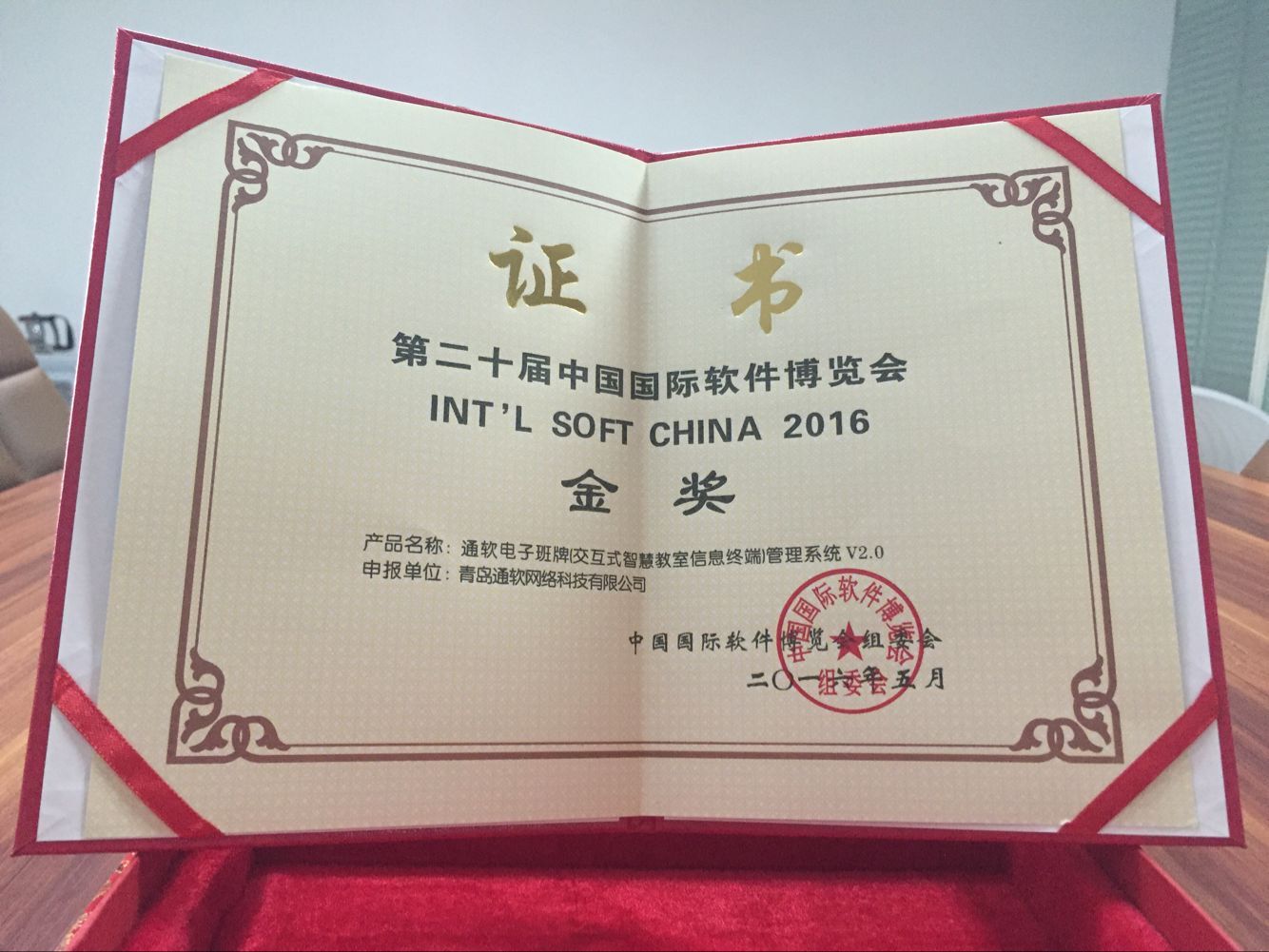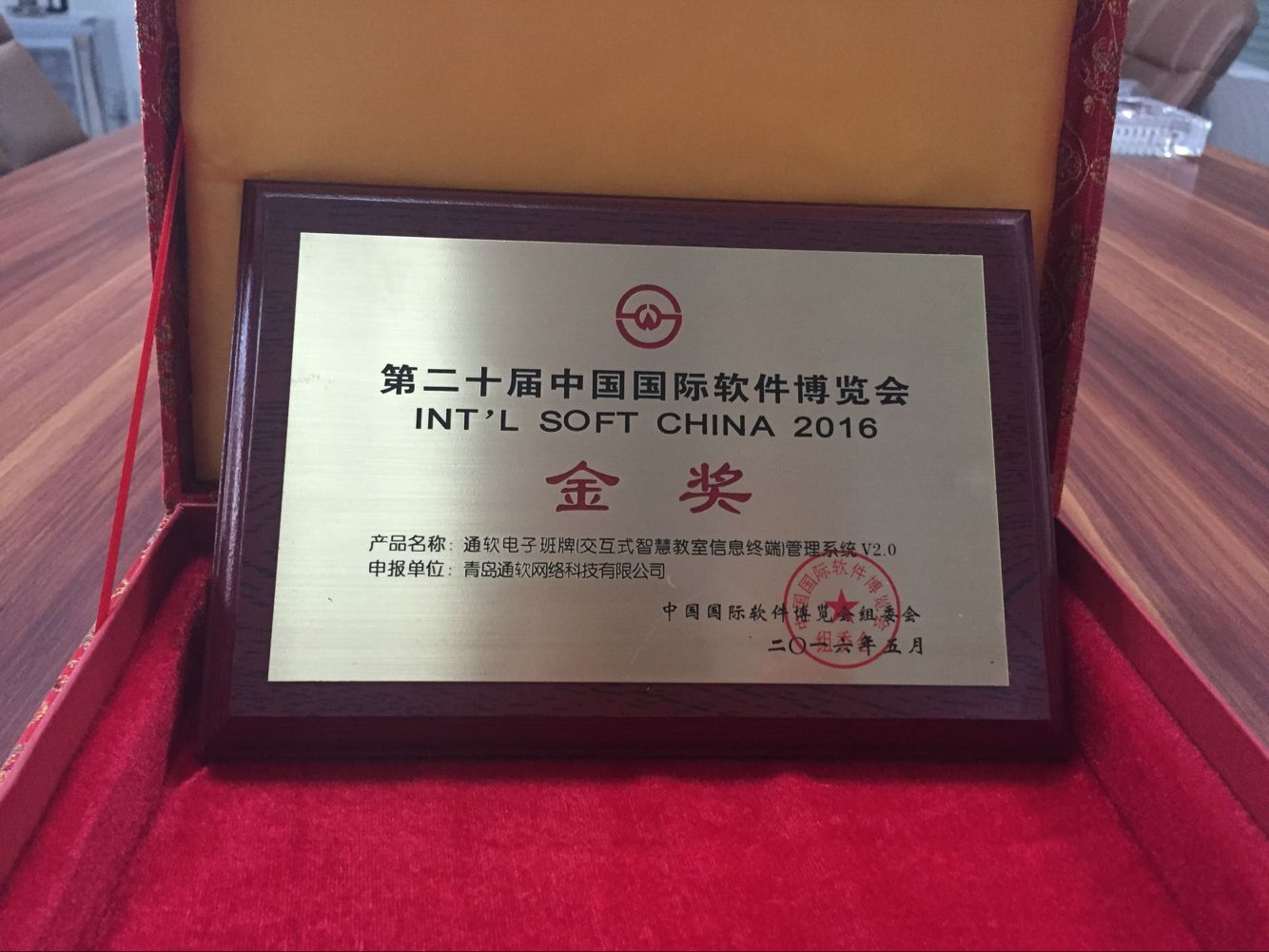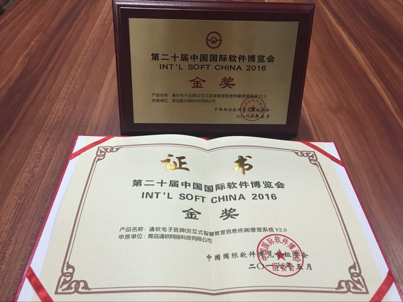 近日,由工業(yè)和信息化部主辦,國家發(fā)展和改革委員會(huì )、科學(xué)技術(shù)部、國家外國專(zhuān)家局和北京市人民政府參與的第二十屆中國國際軟件博覽會(huì )在北京圓滿(mǎn)落幕,青島通軟網(wǎng)絡(luò )科技有限公司的產(chǎn)品“通軟電子班牌(交互式智慧教室信息終端)管理系統V2.0”榮獲第二十屆中國國際軟件博覽會(huì )金獎。