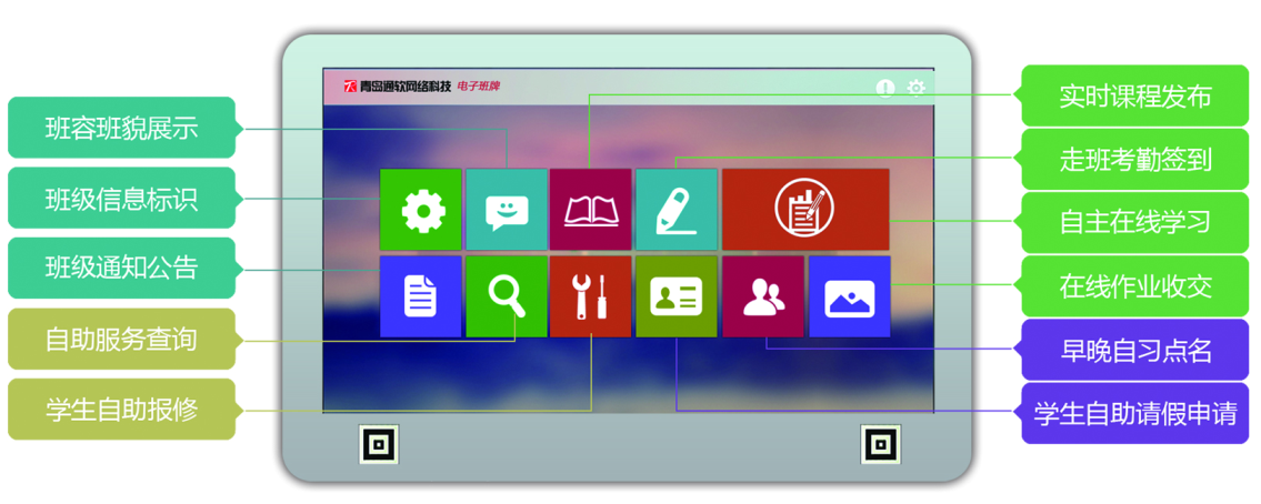 當前,智慧校園建設迎來(lái)了新的一輪發(fā)展,電子班牌作為智慧校園終端信息載體的誕生,必將開(kāi)創(chuàng )智慧教室建設的新局面。 “通軟”電子班牌不再是傳統意義的“班牌”,它是一款集觸摸屏技術(shù)、RFID技術(shù)、多媒體技術(shù)、智能云終端軟件技術(shù)、云平臺技術(shù)為一體的綜合信息終端。 “通軟”電子班牌作為智慧教室建設的終端和入口,首先緊緊圍繞學(xué)校教學(xué)工作,很好地解決了新課改形勢下的學(xué)生走班考勤難題、規范了學(xué)校教學(xué)秩序,同時(shí)電子班牌還成為實(shí)現學(xué)生自主管理、自主學(xué)習、自主發(fā)展的平臺。 此外,電子班牌還是一個(gè)班級的標識和形象展示,是學(xué)校班級文化建設、德育文化建設的一個(gè)新載體。電子班牌作為下一代智慧教室建設的核心產(chǎn)品,必將引領(lǐng)智慧校園建設提升到一個(gè)新的層次。