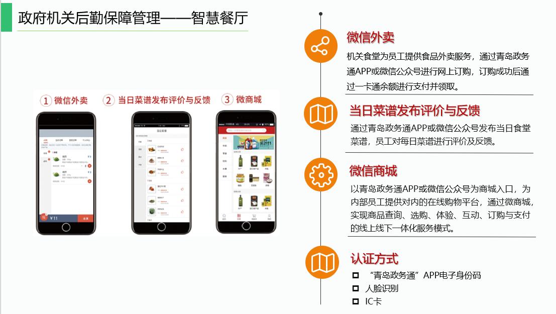 打造智能化運營(yíng)體系,實(shí)現“互聯(lián)網(wǎng)+餐廳”的智慧餐廳管理新模式??刹捎每?、碼、臉任意一種方式扣款,滿(mǎn)足機關(guān)定額消費、補貼消費等多種消費需求;可增加移動(dòng)端功能應用,例如:自助充值、消費查詢(xún)、人臉采集、自助訂餐、自助掛失、訂餐評價(jià)、菜品早知道、通知公告、微商城等。